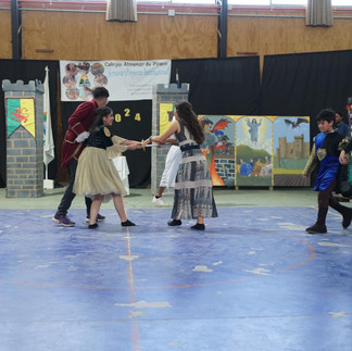 A lo largo de la semana, nuestros/as estudiantes participaron en talleres que abarcaron música, performance, murales, caligrafía, altares, armería, ritos y mucho más, aprendiendo sobre las prácticas y características tanto de los caballeros como de los samuráis. Estos aprendizajes se tradujeron en proyectos creativos que mostraron durante el día de clausura, dejando en evidencia el talento y la dedicación de cada curso.